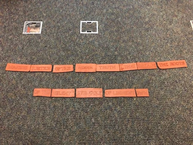 A final view of all the mosaic pieces from Cedar Shoals High School together. It reads, “Making Justice Of The Hidden Truth That Heads The Roots Of The Silent Struggle Of Linnentown"
